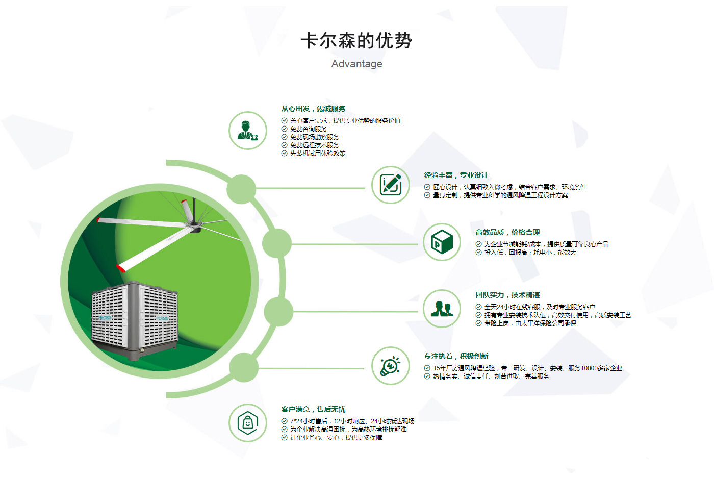 應用范圍: 適用于高溫或有異味的車間:熱處理廠、鑄件廠、塑料廠、鋁型材廠、制鞋廠、皮件廠、電鍍廠、印染廠等各種化工廠等。 適用于勞動密集型企業(yè):服裝廠,各類裝配車間,網(wǎng)吧等。 適用于需要降溫又需要一定濕度的場所:棉紡廠、毛紡廠、麻紡廠、織布廠、化纖廠、經(jīng)編廠、加彈廠、針織廠、絲織廠、襪廠等各類紡織廠。 適用于:倉儲物流領(lǐng)域、園藝溫室大棚通風降溫、畜牧場降溫等場所。 全國服務熱線:13960350919